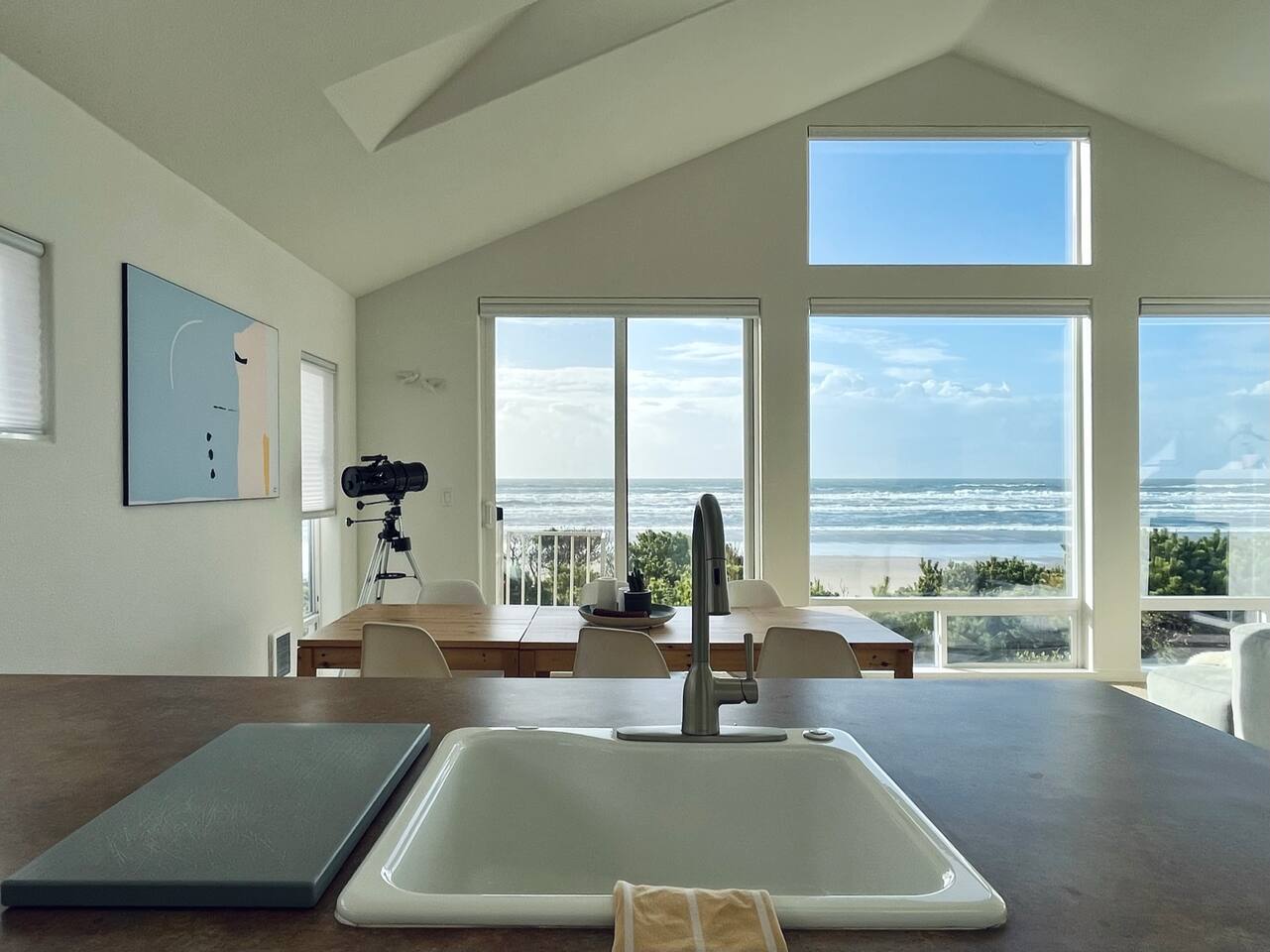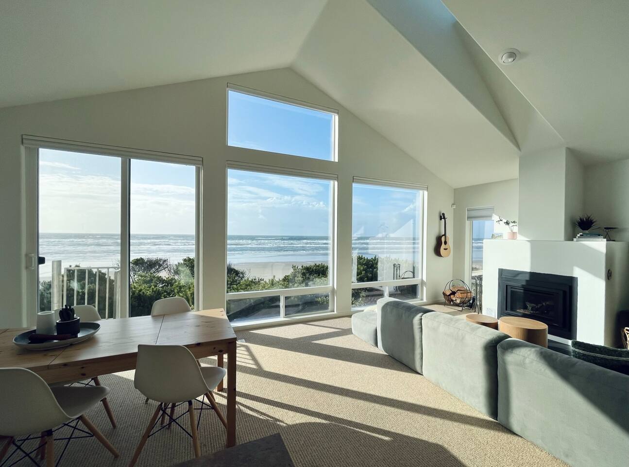 Osprey's Nest is an airy and light-filled luxury oceanfront retreat with breathtaking, panoramic views of the Pacific Ocean. Vaulted ceilings and skylights throughout as well as a modern, minimalist design give the home a clean and uncluttered energy. Inside our home, find a cozy spot to read, enjoy the ocean view, or sneak a quick nap. Step outside to relax on the deck and take in big gulps of fresh sea air, or stroll out to the beach for some fun in Rockaway's seven miles of sand and waves!